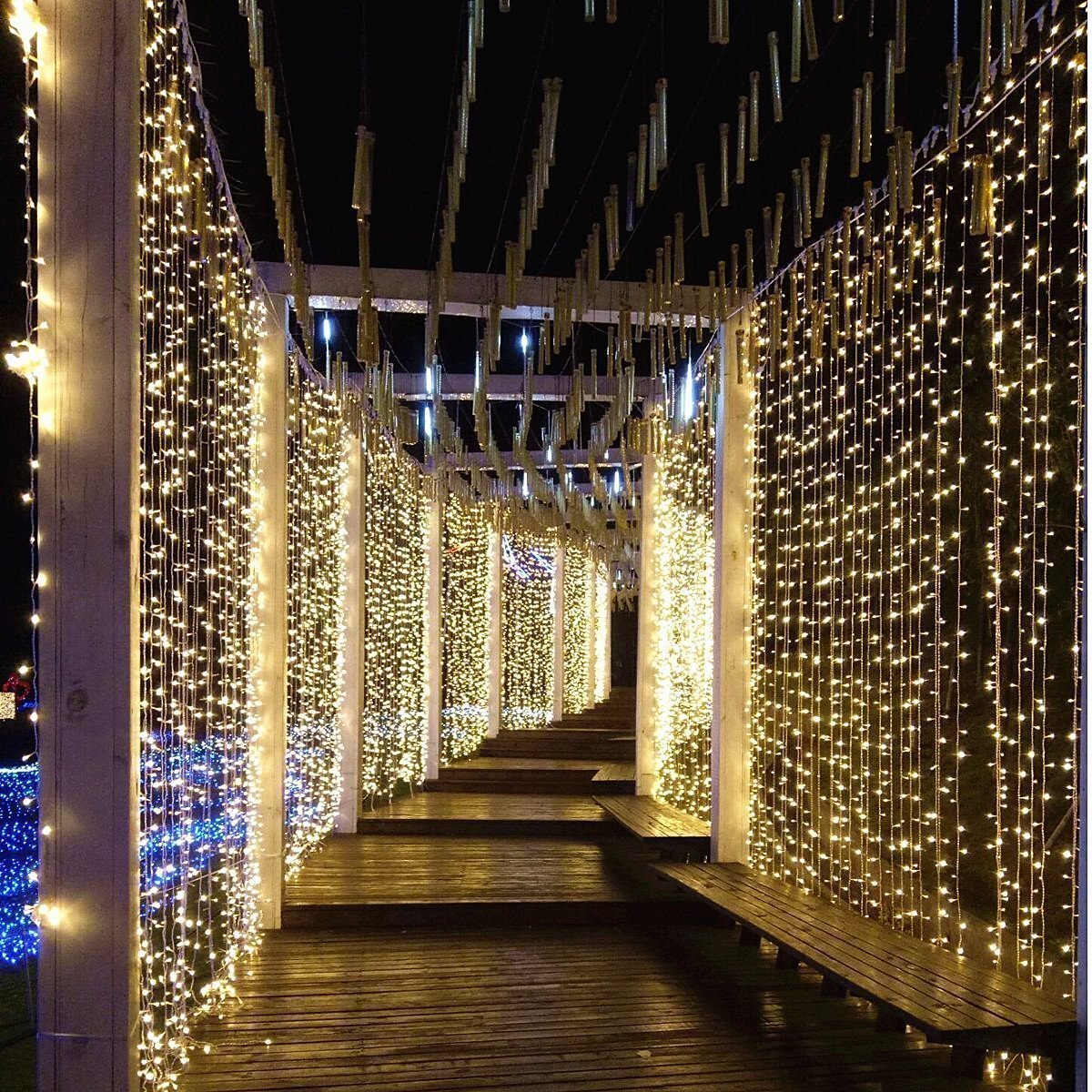 Гирлянда "Занавес" или "Светодиодный Дождь" - представляет собой горизонтальный кабель с вертикально свисающими световыми нитями. Светодиоды, закрепленные на этих нитях, могут светиться в статичном или динамическом режиме. Простая конструкция, высокие технические характеристики и потрясающий визуальный эффект делают ее востребованной для оформления частных домов.